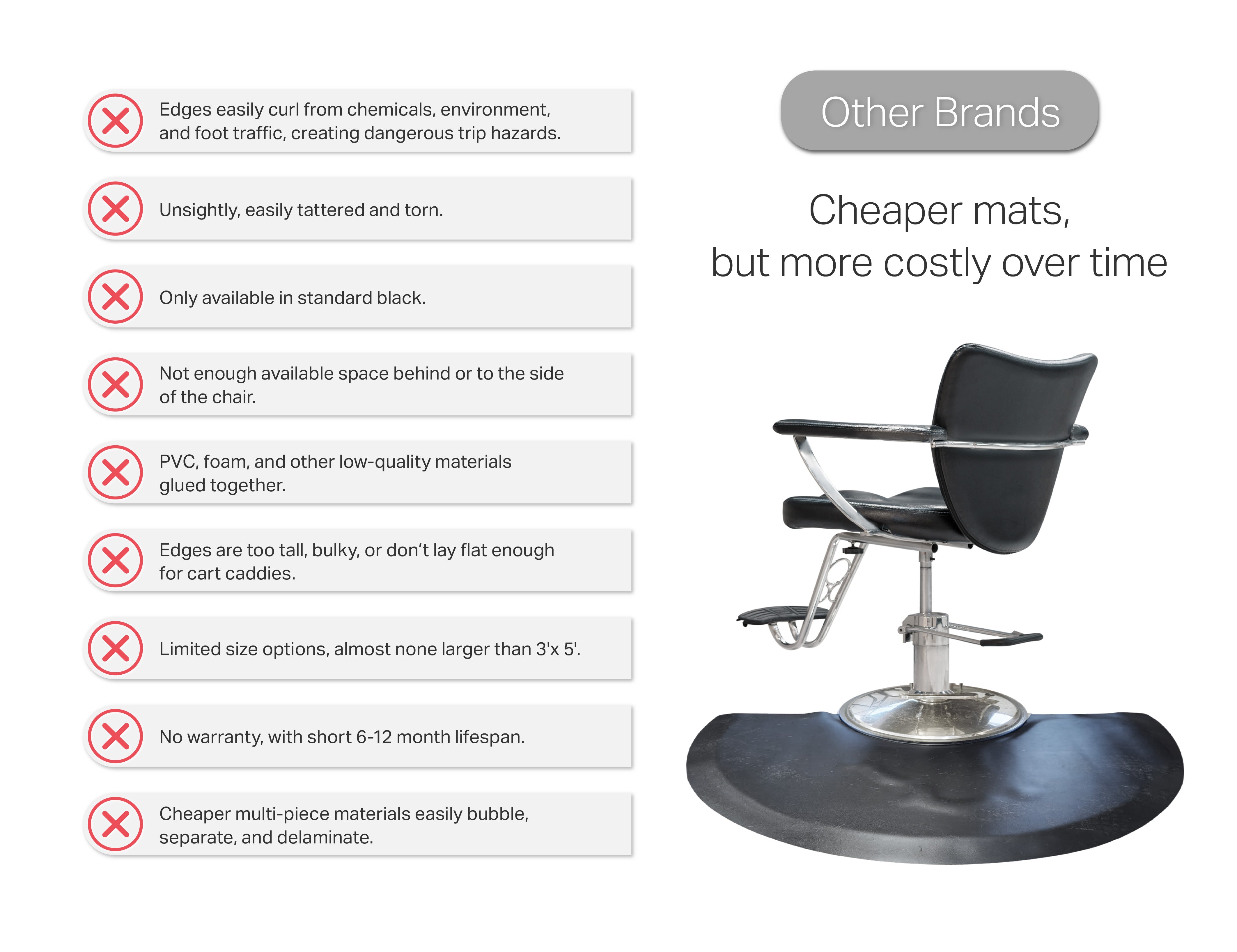 With thousands of surveys and reports, the internet can quickly educate the beauty industry on the endless ailments caused from long term standing. Almost every case references, working on a good, anti-fatigue mat can positively address every ailment related to the beauty profession.
